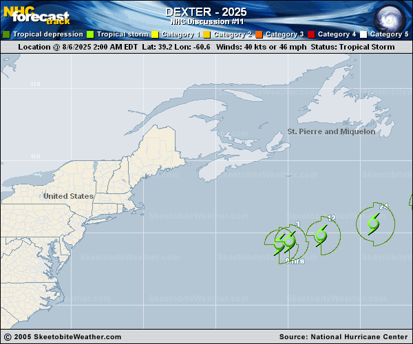 forecast shows Dexter peaking as a 60-kt extratropical cyclone in