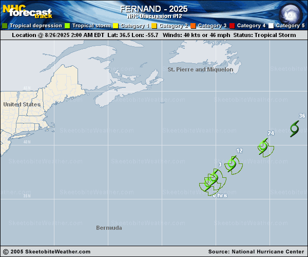 intensity is set at 35 kt for this advisory.  Fernand is moving over