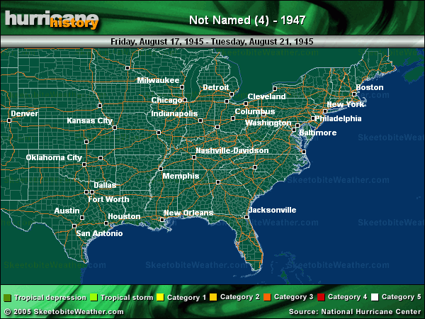 Hurricane Center records indicate this tropical system became a "Named Storm" or Tropical Storm on Friday, August 17, 1945