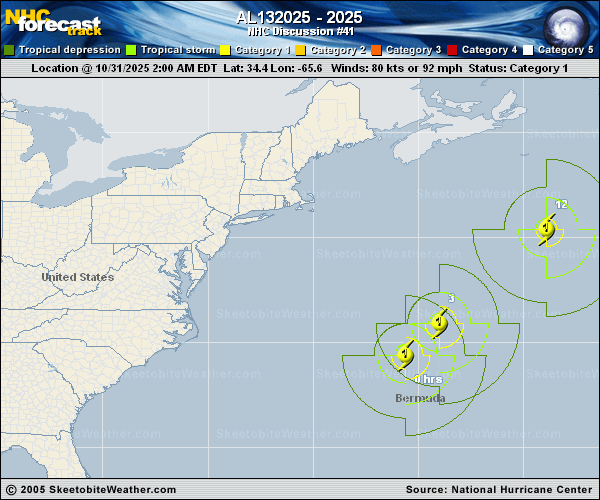 Copy of official data Post-Tropical Cyclone Melissa Discussion Number 41 NWS National Hurricane Center Miami FL AL132025 1100 AM AST Fri Oct 31 2025 Melissa no longer possesses organized convection, and is now merging with a warm front extending eastward and a cold front extending toward the southwest. Therefore, Melissa is now a post-tropical cyclone. Melissa still has hurricane-force winds, especially in the southeastern semicircle, as shown in Thursday evening ASCAT data and also shown in the latest global model fields for the current time of 15Z. The initial intensity is lowered slightly to 75 kt, mainly based on forecast continuity. Large swells from Melissa are spreading over much of the western Atlantic, resulting in hazardous marine conditions in this region. The post-tropical cyclone is racing northeastward, or 40 degrees at 42 kt. This motion should continue into Saturday within the flow ahead of an upper-level trough. Track guidance is in excellent agreement that the center of post-tropical Melissa will pass near, but to the southeast of, the Avalon Peninsula of Newfoundland late tonight, bringing the potential for some gusty winds and heavy rain. Later this weekend, Melissa is forecast to turn east-northeastward while interacting with a higher-latitude, upper-level low over the North Atlantic. Very little change has been made to the NHC track forecast, which lies very close to the average of the GFS and ECMWF deterministic models (GFEX). Global models indicate that Melissa will continue to be a large and strong extratropical cyclone for the next couple of days as it traverses the North Atlantic. Only gradual weakening is expected through the weekend, with the system forecast to have hurricane-force winds for another 24 h and still be a storm-force cyclone in 60 hours. The NHC intensity forecast is at the high end of the guidance suite through 60 hours. By early next week, global models show the large system weakening further as it begins to join up with a large and elongated area of low pressure over the far northeastern Atlantic, and the system should be absorbed and dissipated just beyond the 96-hour point. Key Messages: 1. Post-storm safety: Follow advice of local officials and avoid areas of downed power lines and flooding. Ensure generators are properly ventilated and placed outside at least 20 feet away from dwellings and garages to avoid carbon monoxide poisoning. During clean up, be careful when using chainsaws and power tools. Drink plenty of water to avoid heat exhaustion. FORECAST POSITIONS AND MAX WINDS INIT 31/1500Z 39.0N 60.5W 75 KT 85 MPH...POST-TROP/EXTRATROP 12H 01/0000Z 43.5N 55.2W 70 KT 80 MPH...POST-TROP/EXTRATROP 24H 01/1200Z 49.4N 48.0W 65 KT 75 MPH...POST-TROP/EXTRATROP 36H 02/0000Z 53.2N 41.8W 60 KT 70 MPH...POST-TROP/EXTRATROP 48H 02/1200Z 55.0N 35.8W 55 KT 65 MPH...POST-TROP/EXTRATROP 60H 03/0000Z 56.2N 29.7W 50 KT 60 MPH...POST-TROP/EXTRATROP 72H 03/1200Z 57.5N 24.4W 40 KT 45 MPH...POST-TROP/EXTRATROP 96H 04/1200Z 60.5N 16.5W 35 KT 40 MPH...POST-TROP/EXTRATROP 120H 05/1200Z...DISSIPATED $$ Forecaster Hagen |