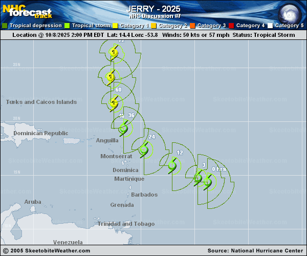 and east in the 120 h period.  While this track puts Jerry safely